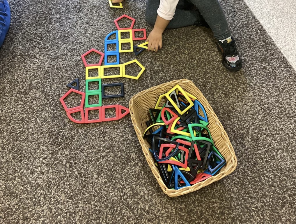 The children have been exploring shapes and how they fit together, with many showing particular interest in connecting magnetic shapes. This mathematical exploration supports their understanding of spatial relationships and problem-solving skills.