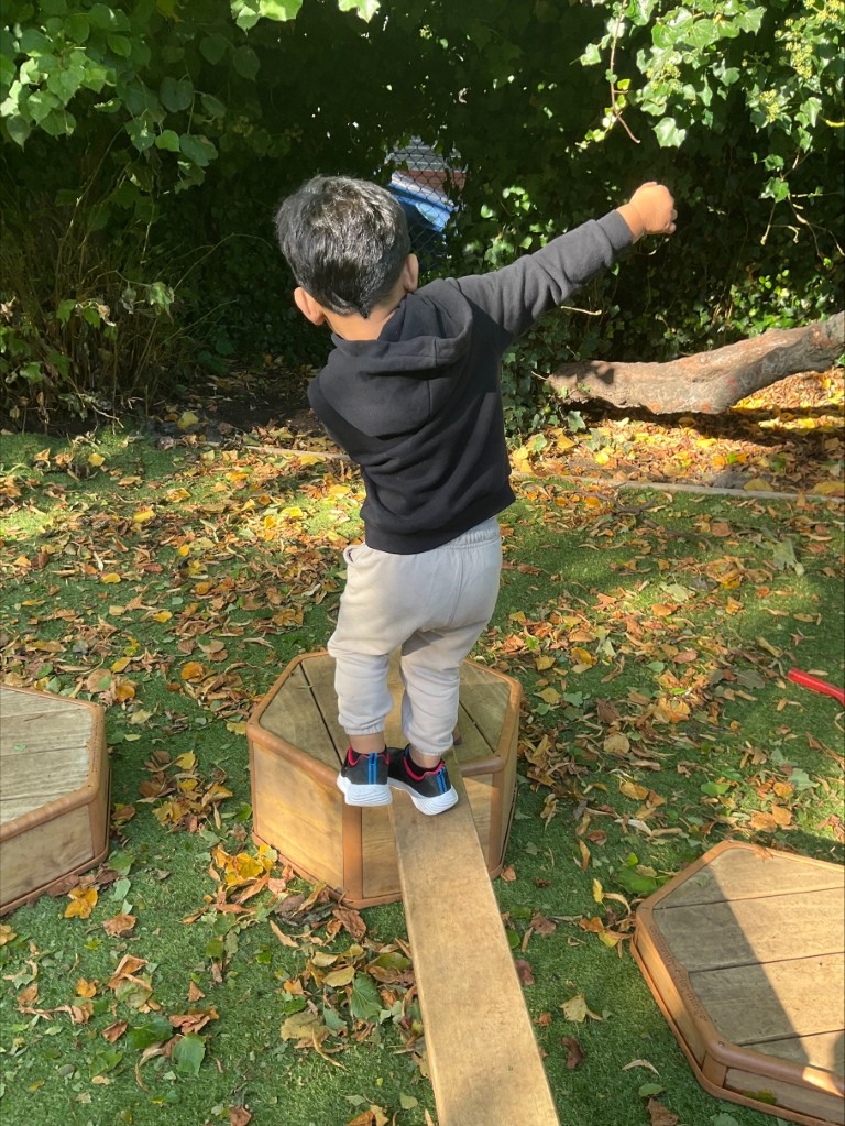 The children have been making the most of the beautiful autumn weather, spending time in our outdoor space and really engaging with the seasonal changes around them. They’ve particularly enjoyed listening to the wind rustling through the trees, developing their awareness of nature’s sounds and rhythms.