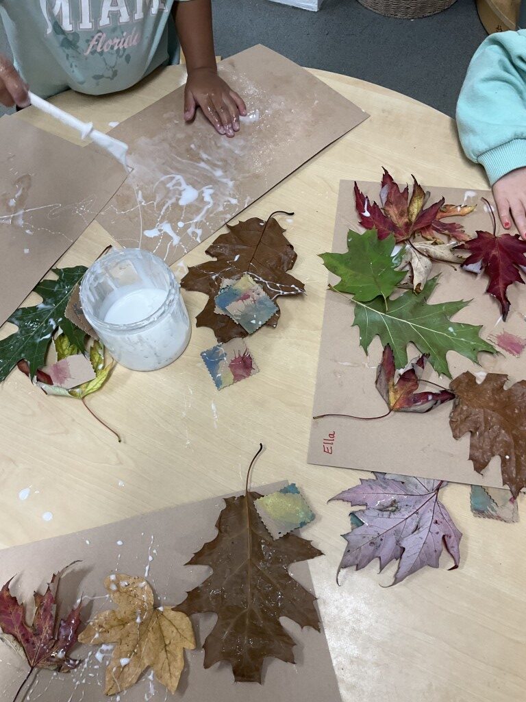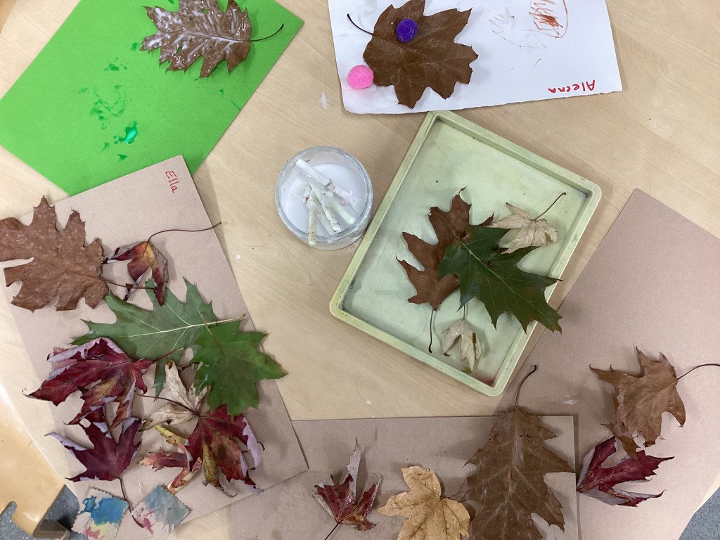 This week, we have gathered autumn leaves from the garden and used them to make beautiful autumnal collages, connecting with the changing season whilst developing creativity and fine motor skills through arranging and sticking natural materials.