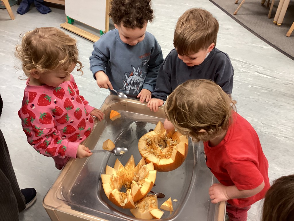We have been investigating pumpkins, scooping out the insides, counting, noticing, and subitising the seeds. This exploration has provided fantastic opportunities for mathematical thinking whilst engaging with seasonal produce through sensory and hands-on investigation.