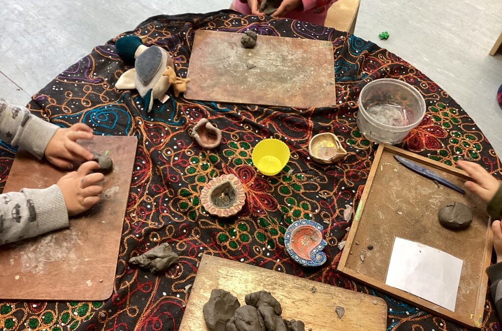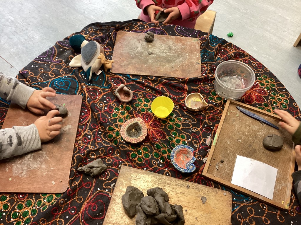This week, the children have been celebrating Diwali, learning about the Festival of Lights through hands-on experiences. We have been creating clay Diyas, developing fine motor skills whilst making these traditional lamps. The children watched and took part in a puppet show of Rama and Sita, engaging with the narrative through interactive storytelling whilst learning about this significant cultural celebration.