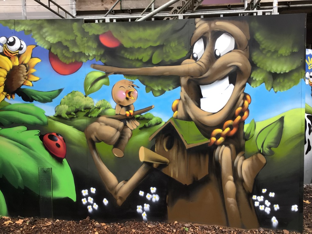 Something exciting happened at Rosemary over the holidays! Street artist Cheo came to paint our scaffolding boards to make the garden even more vibrant and inspiring for our children.