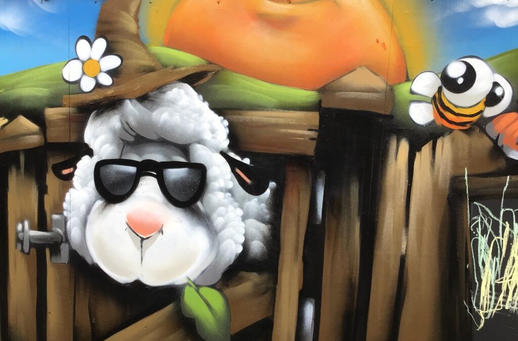 He captured what was important to us at Rosemary – the children’s love of the outdoors, animals we had at our 100th birthday party, their wonder of insects, and even left spaces for them to create their own artwork. He also captured our beautiful sunflowers! This wonderful artwork celebrates our nursery community and provides a colourful backdrop for outdoor play and learning, whilst giving children the opportunity to contribute their own creative marks to this collaborative piece.