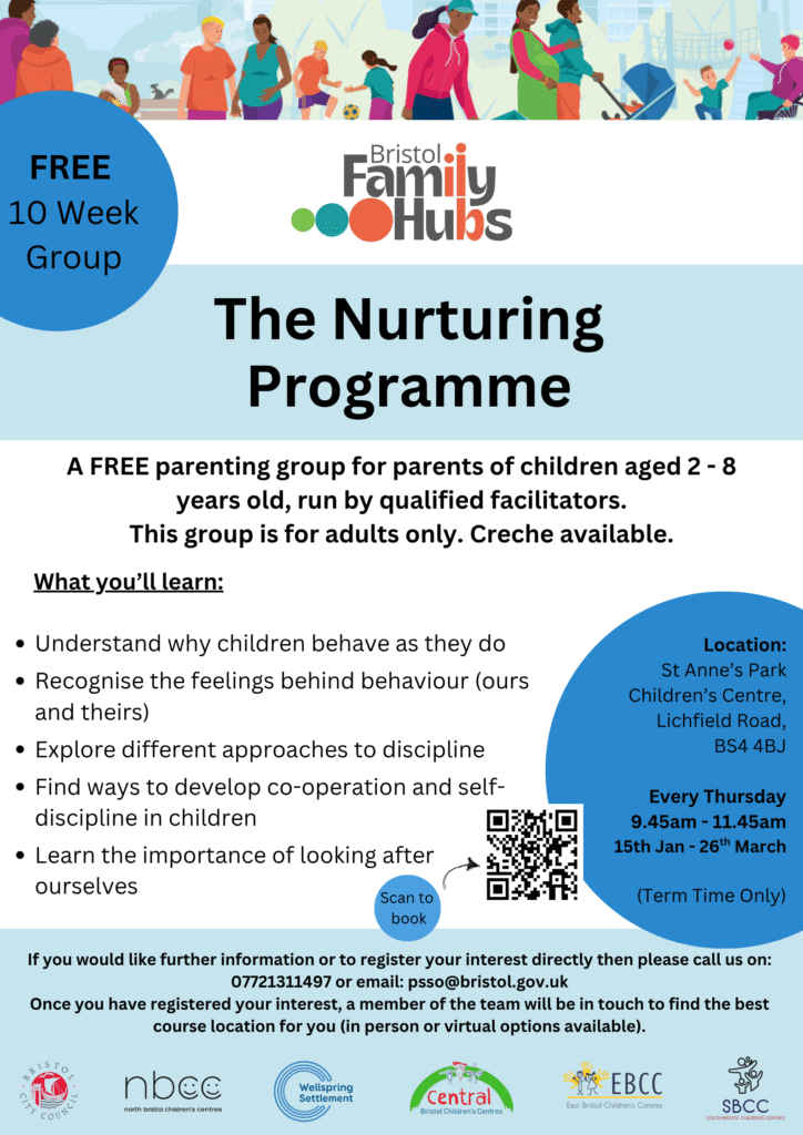 Bristol Family Hubs are running a free 10 week parenting group, starting on the 15th of January 2026 up until the 26th of March, come along to St Anne’s Park Children’s Centre on Lichfield Road (BS4 4BJ) every Thursday.