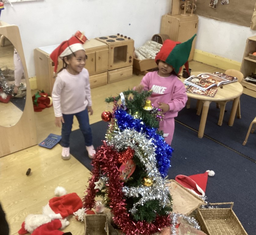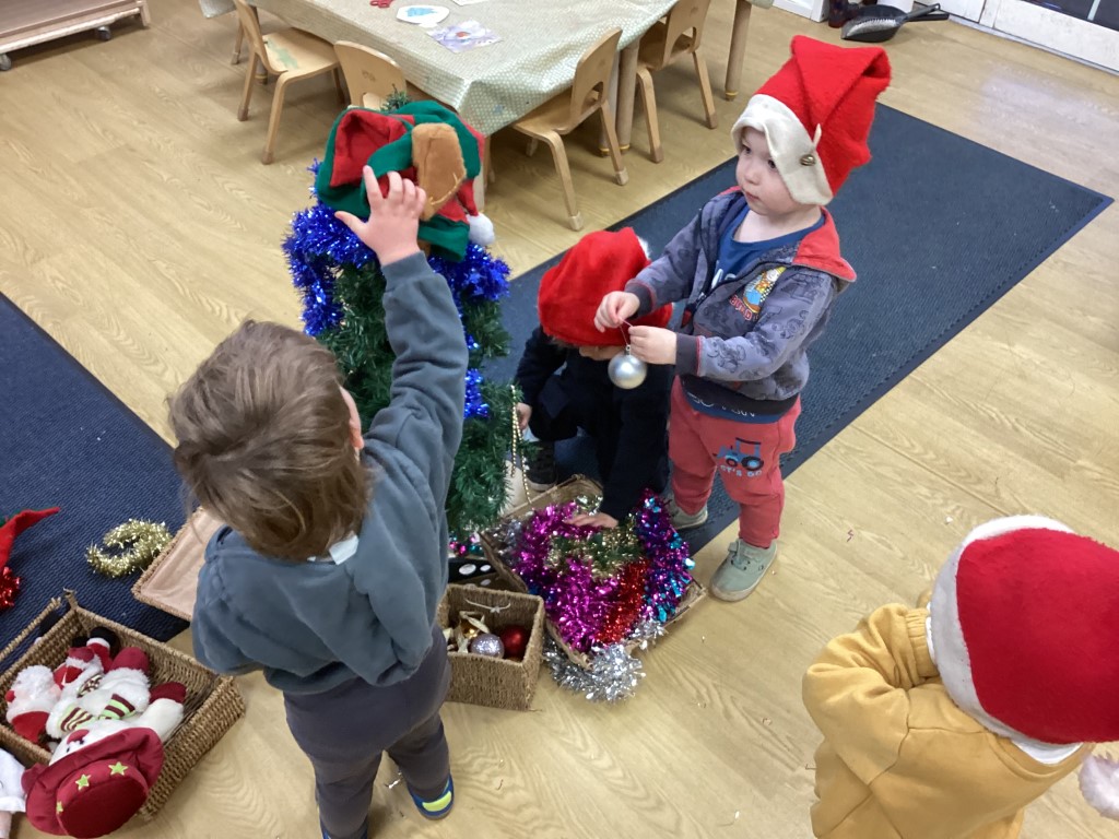 The children have been creating winter pictures and decorating our Christmas tree, exploring seasonal themes through art and craft whilst developing fine motor skills through cutting, sticking, and hanging decorations. These festive activities help children understand the changing seasons and cultural celebrations whilst building excitement for the holidays ahead.