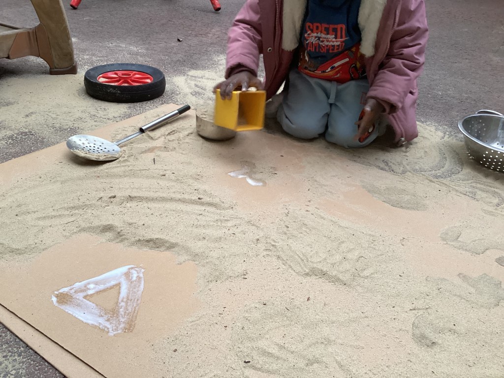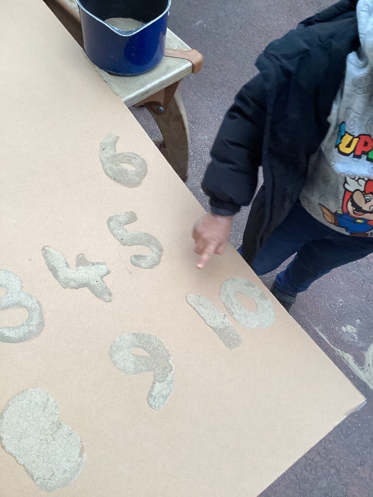 We have painted with glue too, covering numbers, shapes, and letters with sand and had a big surprise when the sand stuck to the glue! This exciting discovery introduced children to adhesive properties whilst creating textured representations of familiar symbols and forms.