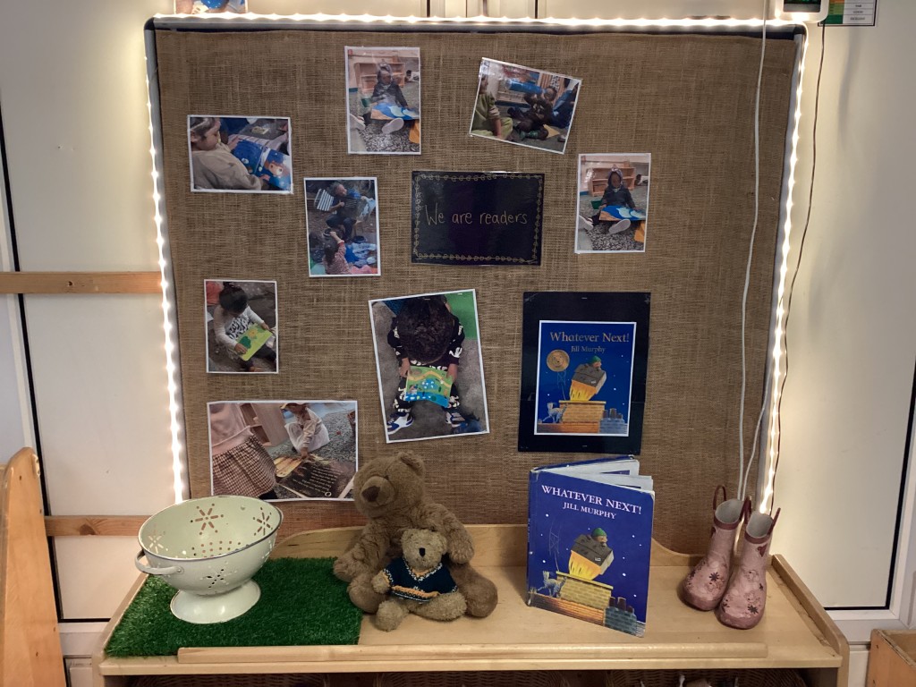 The core book for the next two weeks is “Whatever Next” by Jill Murphy, about a bear who builds his own rocket and flies to the moon. This delightful story has captured the children’s imaginations and sparked curiosity about space exploration.
