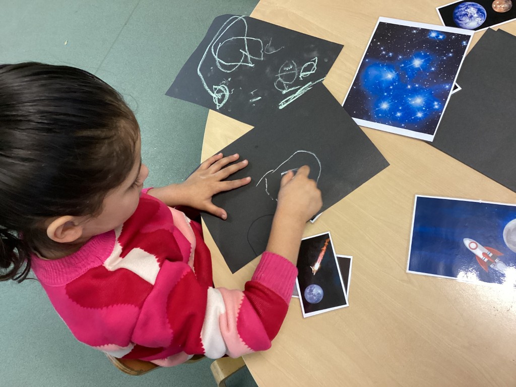 Class 1 has been following themes from the book and the children’s interests about space, the moon, the stars and flying rockets. These explorations provide wonderful opportunities for children to develop their understanding of the world, engage with scientific concepts and express their creativity through space-themed activities.