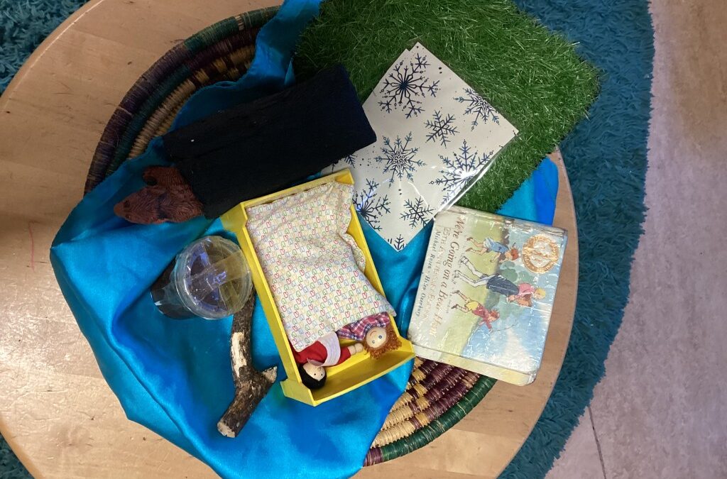 We have been reading our core book, “We’re Going on a Bear Hunt,” and joining in with the story’s rhythm, developing musicality and language skills through its repetitive, chant-like structure, whilst building confidence to participate with familiar phrases and actions.