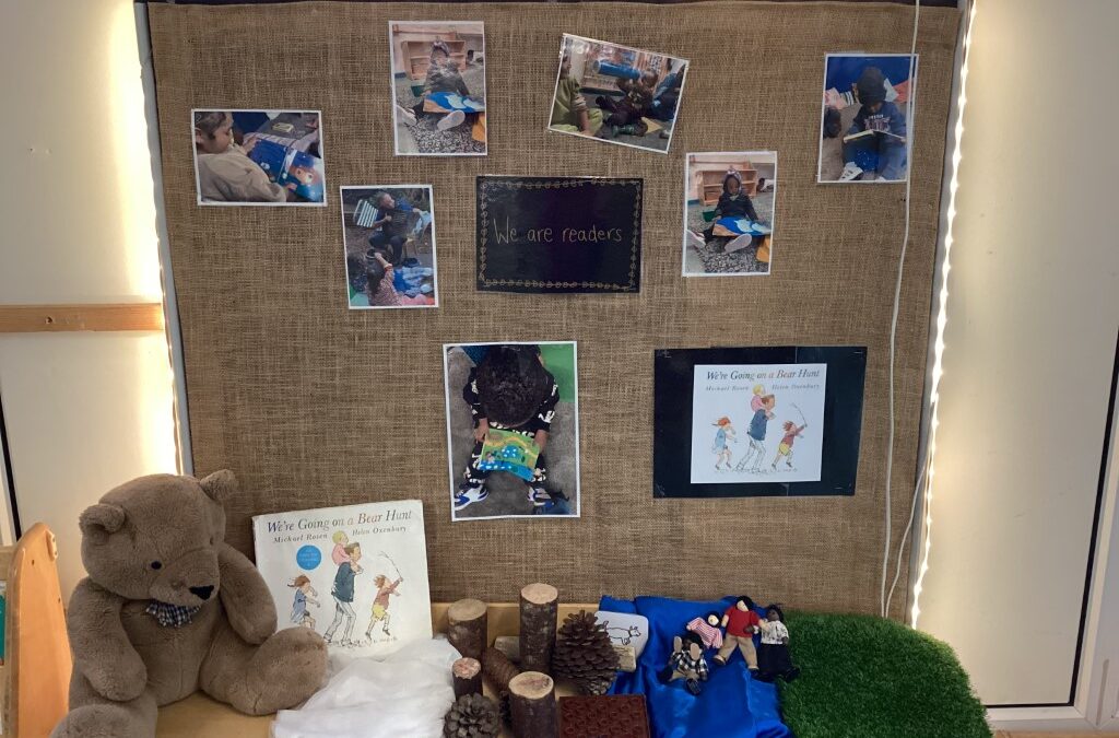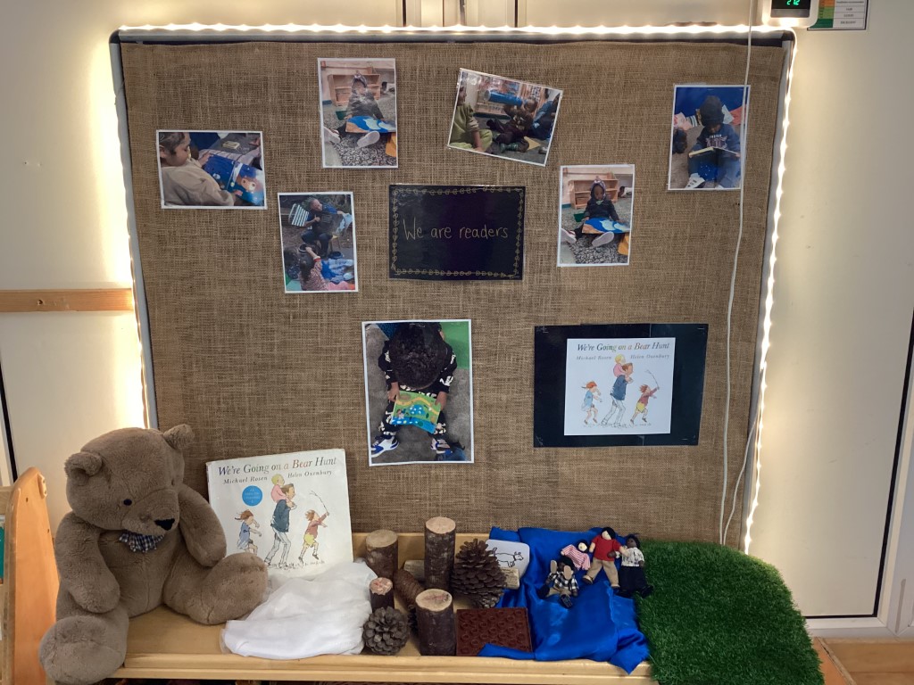 Our core book for the last two weeks has been “We’re Going on a Bear Hunt” by Michael Rosen. The children have really enjoyed listening to the story as a song with repeating patterns that aid independent retelling, building confidence in narrative whilst enjoying the rhythmic, chant-like structure.