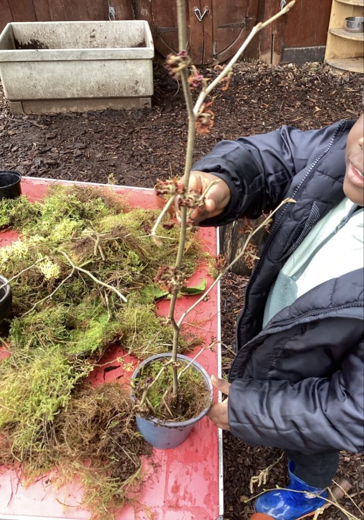 In the garden, we have been exploring the feel of moss and different twigs and plant materials, discovering the varied textures and properties of natural objects. The children have been growing their own ‘plants’ in pots, learning about plant care whilst developing patience and responsibility as they nurture their growing creations.