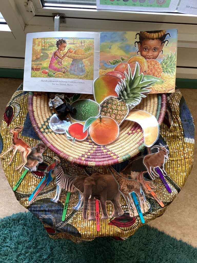 The children have been enjoying Handa’s Surprise, bringing the story to life by acting it out using props during their play. This kind of storytelling play is fantastic for developing language and communication skills, and it is always wonderful to see children take ownership of a story and make it their own.