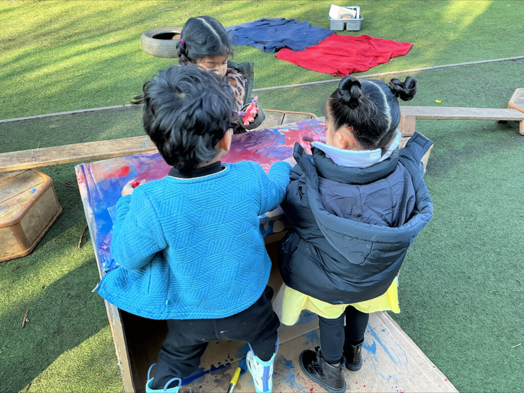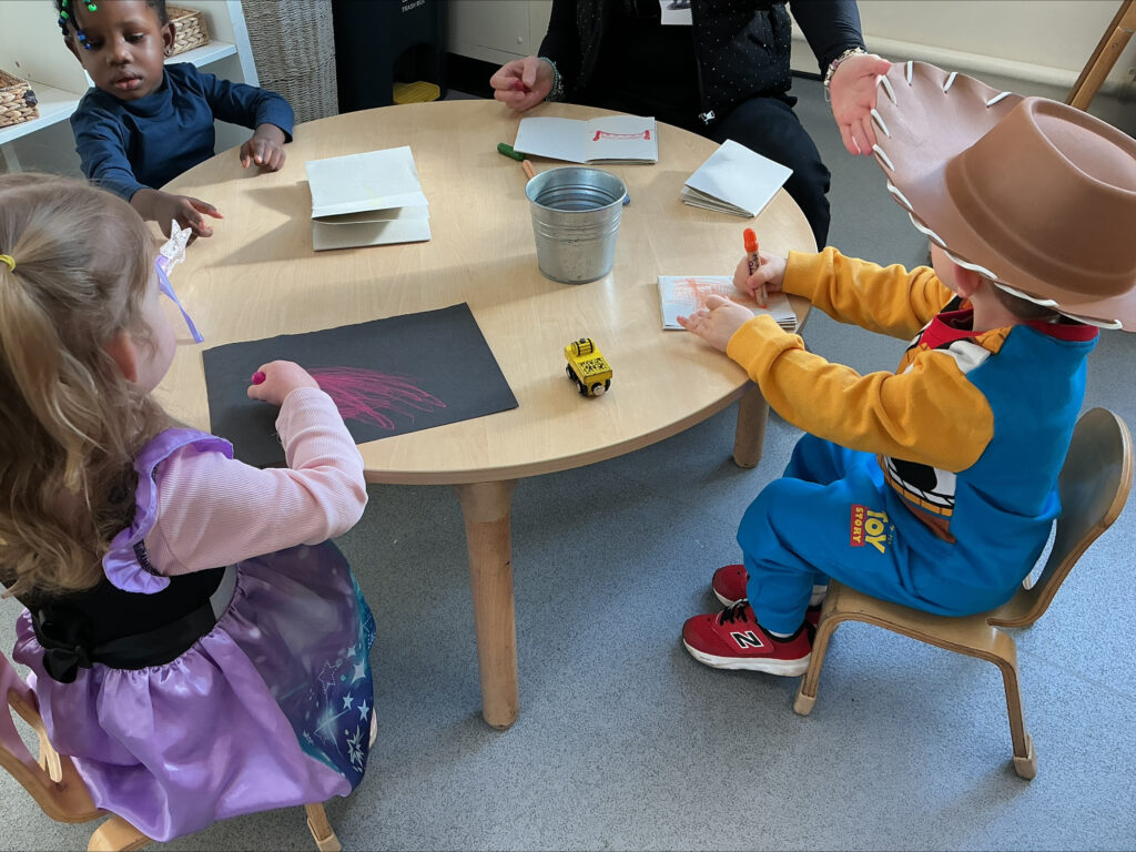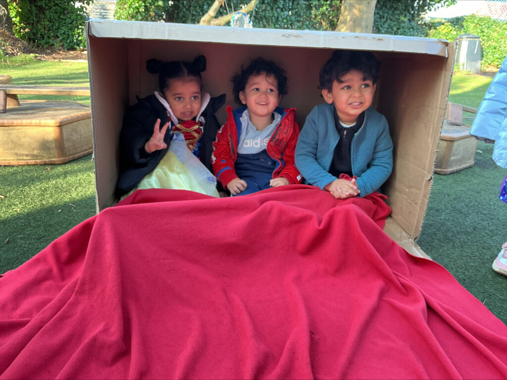 The children have been making their own books and creating their own stories in the creative area, which has been a brilliant way to develop early literacy skills and unleash some seriously impressive imaginations. In the garden, the children painted a giant cardboard box and transformed it into a cosy reading den, which has already become a very popular spot!