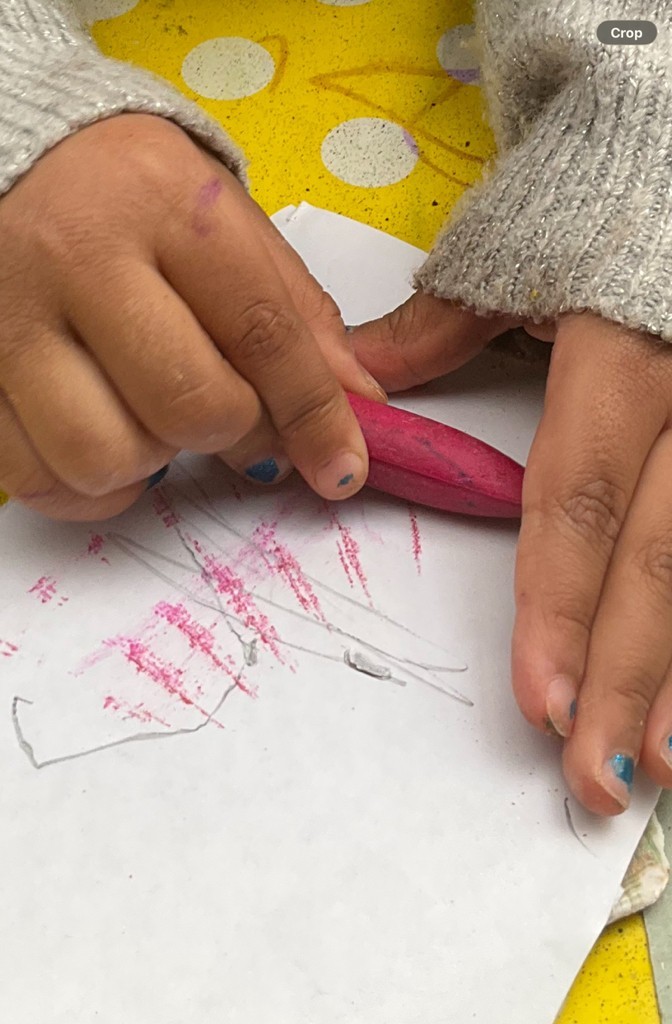 Our creative exploration continued with a focus on different textures. The children used crayons to create rubbings of various surfaces, observing the unique patterns that appeared. There was great excitement as they compared their rubbings to the tiger’s stripes in our story, helping them to make visual connections and develop their descriptive language.