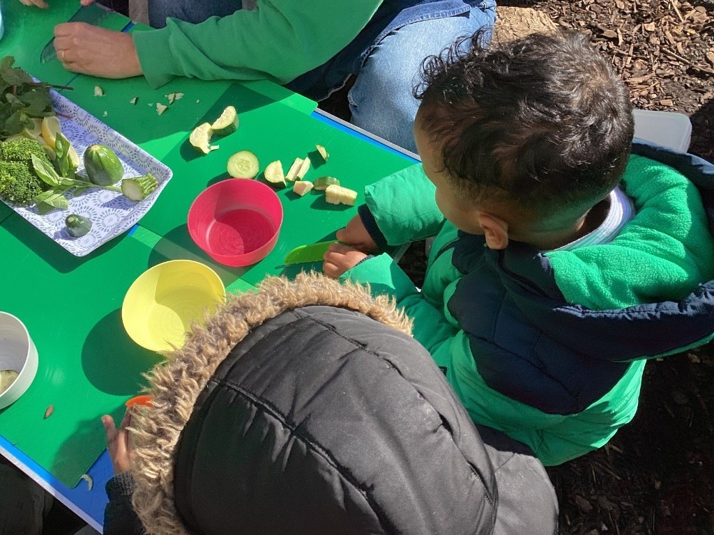 During the party, the children sang the Eid Mubarak song, explored a variety of fruits and vegetables with Children’s Kitchen, enjoyed dancing together and shared delicious food with their children and families. These experiences supported children’s learning through the Early Years Foundation Stage (EYFS) by encouraging communication, social interaction and understanding of different celebrations and cultures.