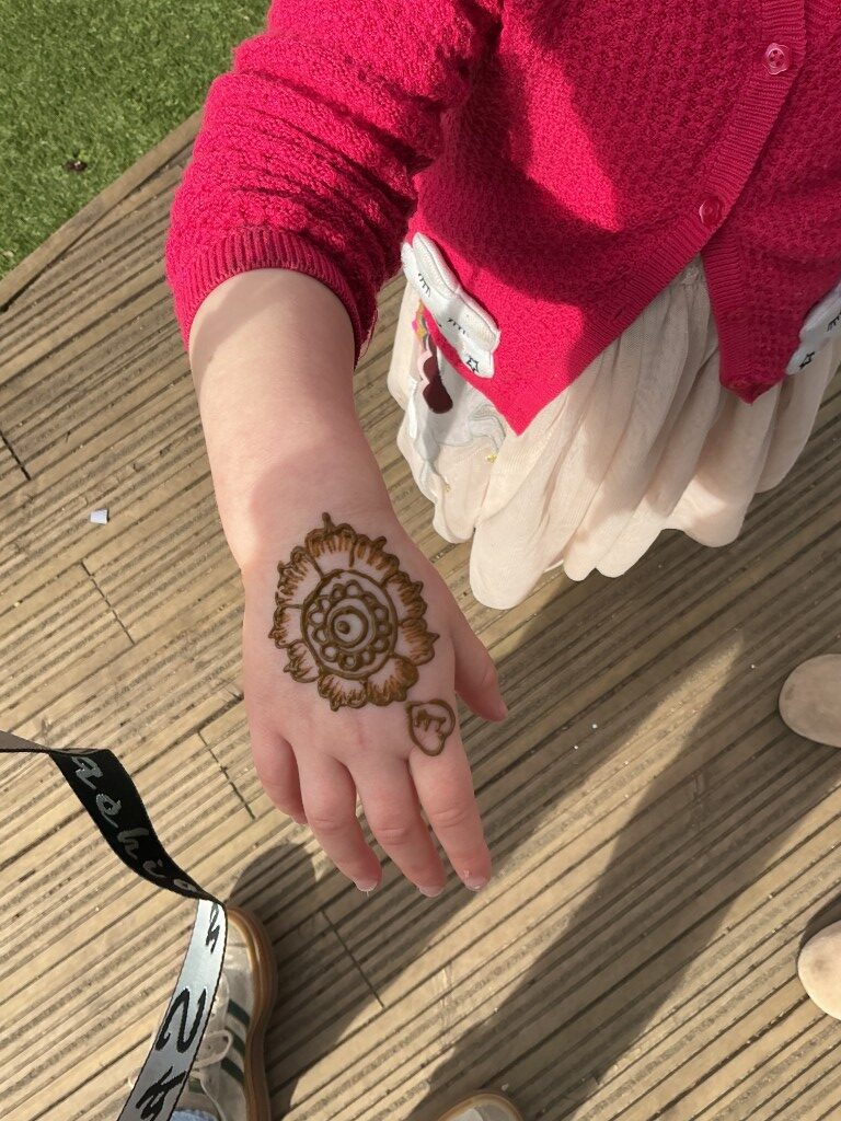 During the day, many of the children enjoyed sharing food and playing in the garden. Several children were also keen to have henna as part of the celebrations. These experiences supported children’s understanding of different celebrations and traditions, linking closely to the Early Years Foundation Stage (EYFS) through Understanding the World and opportunities for social interaction.